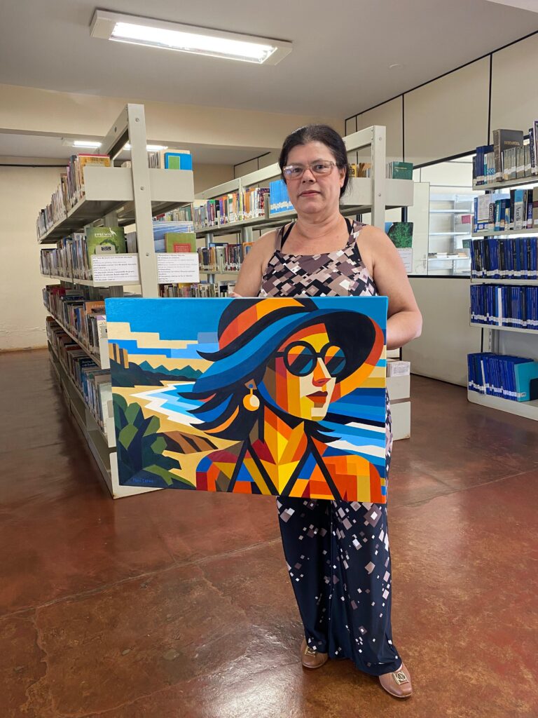 Como forma de homenagear todas essas pessoas, destacamos um pouquinho da história de quatro servidores. A Moni Carmo, além de servidora, é artista e escritora. Neste ano, uma de suas obras foi exposta ao lado da icônica Mona Lisa, no Museu do Louvre, em Paris — um reconhecimento que enche de orgulho toda a comunidade da UFJ. “Para essa exposição, o critério de seleção era a identidade da obra. Ter uma obra minha vizinha da Mona Lisa por três dias foi um luxo”, celebra Moni Carmo.