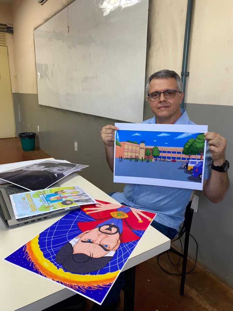 O Massoiacy é outro exemplo do quanto os servidores da UFJ vão além. Ilustrador de talento raro, ele transforma ideias em imagens com traços precisos e muita sensibilidade. Tudo feito à mão, em um processo que une técnica, paciência e arte. “Comecei a desenhar na adolescência, porque gostava de revistas de história em quadrinhos, de super-heróis. Para mim é uma terapia, que alivia o estresse da correria do dia a dia. Ver um desenho pronto traz uma sensação de satisfação”, afirma Massoiacy Marques.