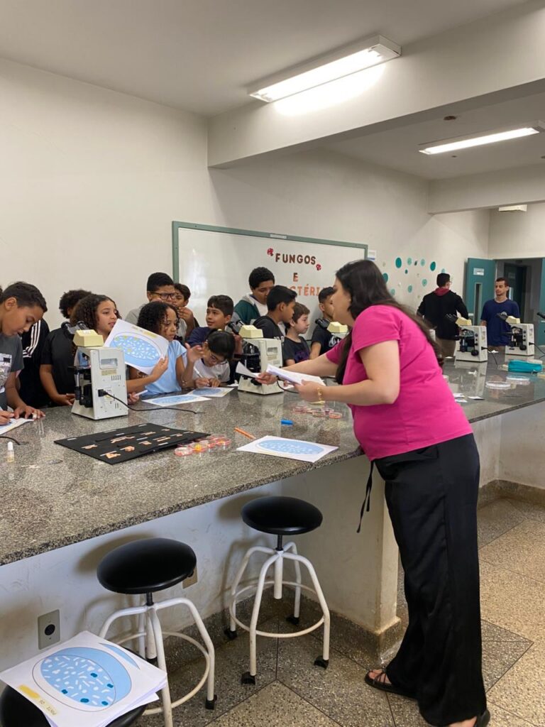 Ao longo da visita, as turmas puderam conhecer os laboratórios de pesquisa e observar, por meio de microscópios, elementos que estão diretamente relacionados aos conteúdos estudados nas aulas de ciências, como por exemplo, as células. A proposta da atividade foi transformar o que os estudantes veem nos livros em experiências concretas e estimulantes.