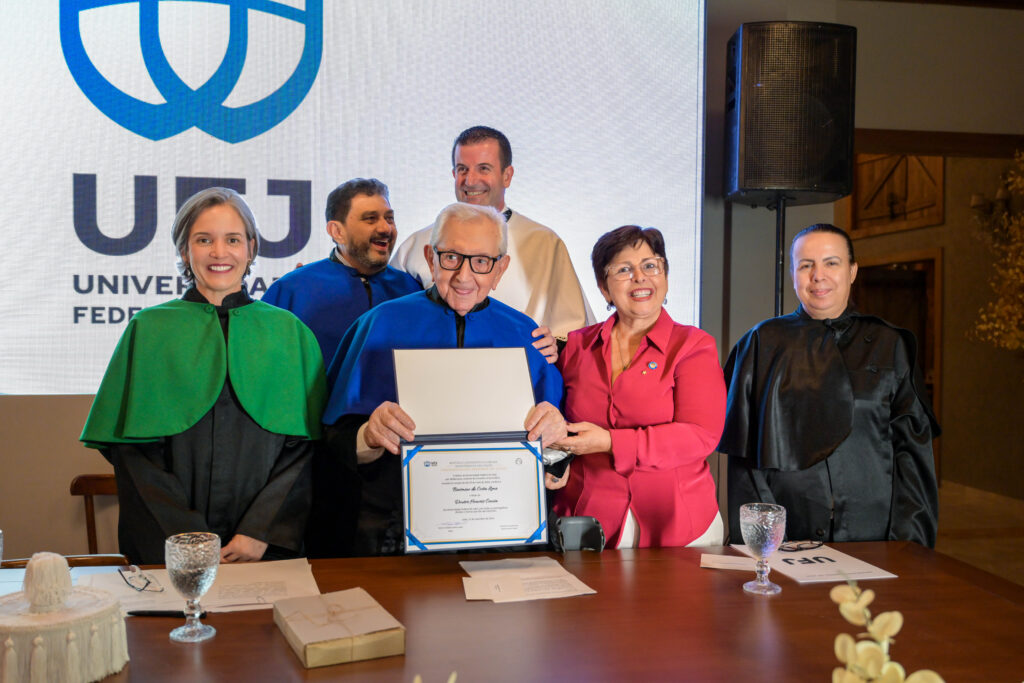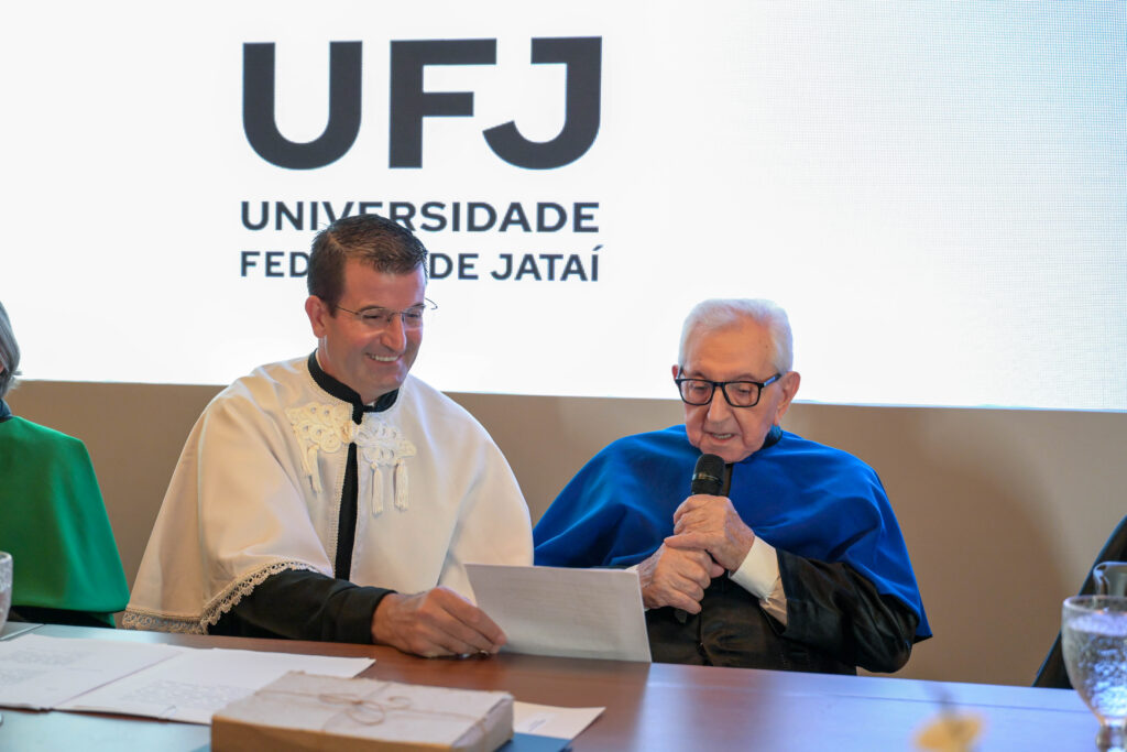 Na ocasião, a visita também simbolizou uma homenagem em vida à sua história, marcada de forma definitiva na Universidade Federal de Jataí ao se tornar o primeiro cidadão a receber o título de Doutor Honoris Causa concedido pela instituição, a mais alta honraria acadêmica da UFJ, entregue em outubro de 2024.