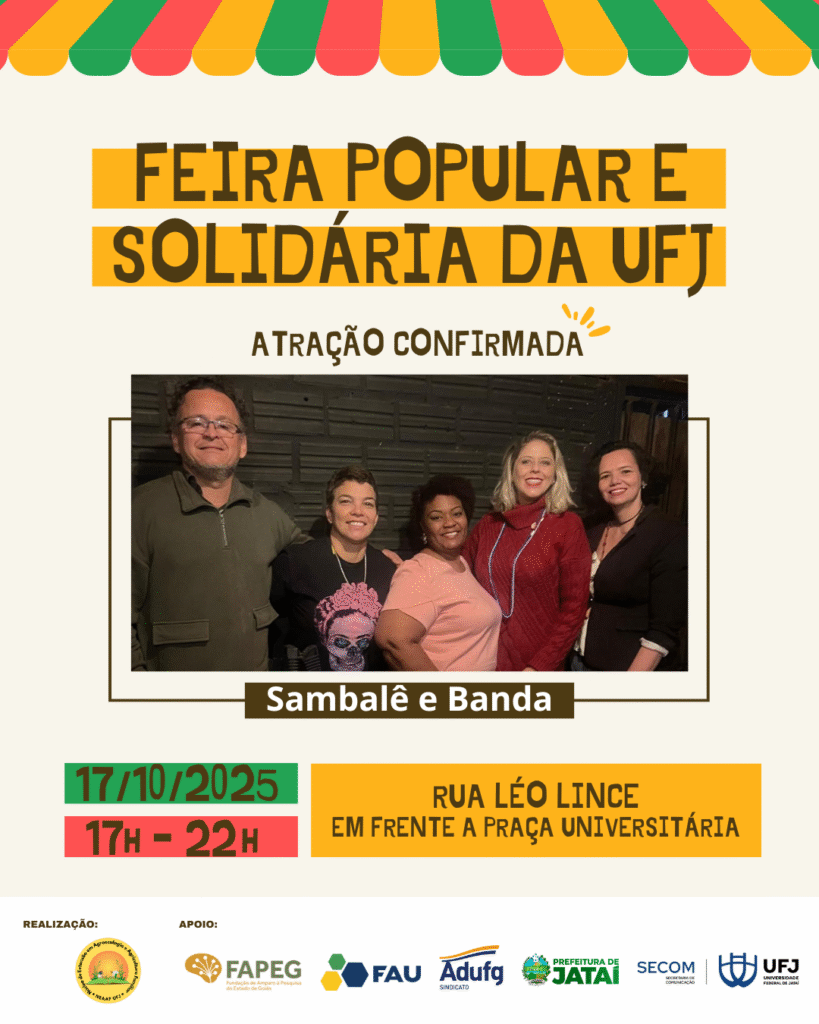 O Núcleo de Estudos, Pesquisa e Extensão em Agroecologia e Agricultura Familiar (NEAAF/UFJ) convida toda a comunidade acadêmica e externa para a terceira edição da Feira Popular e Solidária da UFJ.