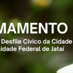 A Universidade Federal de Jataí convida você a participar do Desfile da Cidade 2026, que neste ano traz o tema “Cidade Abelha”. 📅 Data: 31 de maio📍 Local: Avenida Goiás, Centro🕘 Horário: período da manhã Já estão confirmadas na programação: 🎌 Flâmulas dos Cursos — bolsistas PROBEC representarão os cursos da UFJ no desfile.🎭 Projeto… Continue lendo Participe no Desfile da Cidade de Jataí